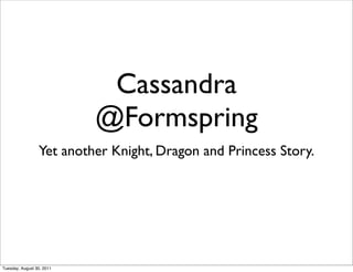 The document describes the transition of Formspring's social graph infrastructure from a MySQL and Memcache system to a Cassandra database. It discusses the scaling issues they faced with high growth, including slow queries and out of memory errors. Formspring built a social graph using Python, Cassandra, Pycassa and Thrift to model following, followers, blocks and blockers. They iteratively loaded user data into Cassandra and migrated reads and writes from MySQL to the new Cassandra cluster. This allowed their "Ask Followers" feature to scale to support 14k queries per minute for following counts and 40k queries for follower counts during peak times.