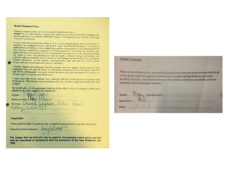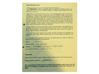 The document provides casting details for the roles of Arabella, Freddie, and Harriet in an upcoming production. It includes the names, ages, addresses, phone numbers, and brief descriptions of why each actor was chosen for their role. Lois Jones was chosen to play Arabella because she is the same age and has similar attributes. Jack Whowell, though older at 19, was chosen to play Freddie because of his lively character. Poppy Williams was chosen as Harriet since she has a completely different look than Lois, illustrating that the characters are opposites.
