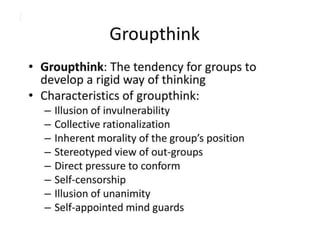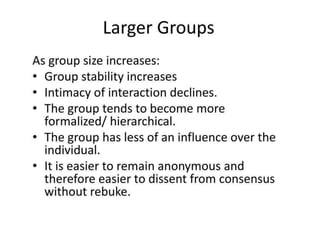 This document discusses theories of deviance and social control. It begins by defining deviance as behavior that violates group or societal norms and expectations. It then discusses types of deviance, including formal (illegal acts) and informal (non-conforming behaviors). The document also defines social control as techniques used to prevent deviant behavior. It outlines levels of social control including conformity, obedience, and techniques such as sanctions. The remainder summarizes several theories of deviance, including biological perspectives, structural functionalism, strain theory, and labeling theory. In closing, it notes deviance strengthens social bonds by defining moral boundaries in society.