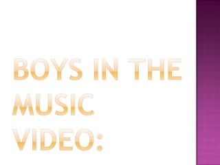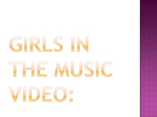 The document assigns roles and pairings for members of a band in an upcoming music video. It describes the looks and roles of five female band members (Beatrice, Amy, Laura, Helen, Megan) and four male actors (Jack, Adam, Ermal, Joe). It then pairs each male with a female band member based on compatibility of looks and comfort level, to make it easy for viewers to understand the relationships portrayed in the video.