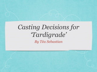 2) It describes each character and why the group member is well-suited to play that role, noting personality traits.
