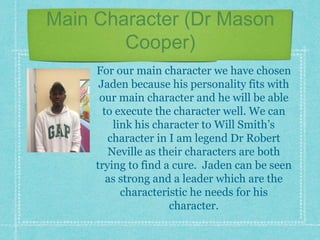 1) The document assigns characters from a zombie film to members of a filmmaking group.