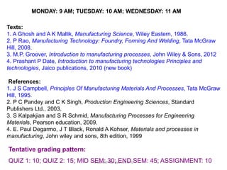 This document provides information on the manufacturing process of metal casting. It discusses the key steps in metal casting which include mould preparation, pouring molten metal, solidification, and inspection for defects. Moulds are prepared using sand and patterns to form cavities. Molten metal is poured into the mould and allowed to solidify to form the final casting. Proper mould design and avoiding defects are important for successful casting. Metal casting allows for intricate shapes but has limitations in dimensional accuracy and surface finish compared to other processes.