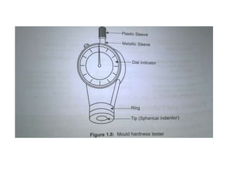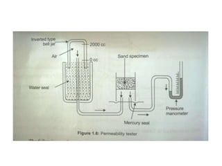 The document provides an extensive overview of metal casting processes, detailing various types including sand casting, and the materials involved such as moulding sands and binders. It outlines the advantages and disadvantages of sand casting, the steps in the casting process, and important characteristics of moulding sand. Additionally, it discusses the preparation of sand, the role of patterns in casting, and various methods for testing sand's properties.