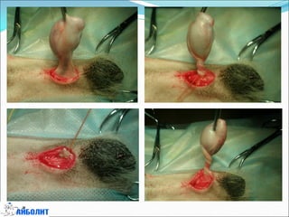 Документ обсуждает стерилизацию и кастрацию мелких домашних животных, описывая процедуры, их пользу и последствия. Упоминается высокая численность бездомных животных и необходимость борьбы с их размножением, включая программы стерилизации. Также приводятся мифы и факты о стерилизации, подтверждающие ее важность для здоровья питомцев и общества.