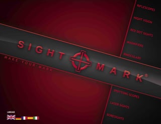 The document provides information on various riflescopes, sights, and accessories from Sightmark. It includes specifications for several products, such as the WRAITH 4K Mini riflescopes that feature 4K imaging, night vision modes, and video recording. The document also discusses reticle basics and how different reticle styles like mil-dot and duplex are suited to various types of shooting. Success stories are included that feature hunters who use Sightmark products.