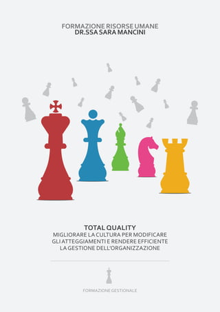 Il documento presenta l'offerta formativa della Dr.ssa Sara Mancini, focalizzandosi su aree come la Total Quality, la gestione delle risorse umane e l'efficienza organizzativa. Vengono descritti corsi di formazione su vari temi, dall'eccellenza nel servizio clienti alla leadership e al problem solving, evidenziando la personalizzazione dei contenuti e le metodologie didattiche utilizzate. Il programma mira a migliorare la cultura organizzativa e a promuovere la collaborazione interfunzionale per ottenere una gestione più efficiente.