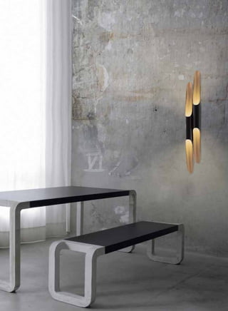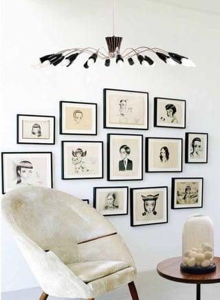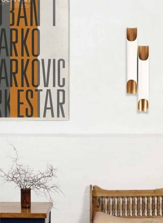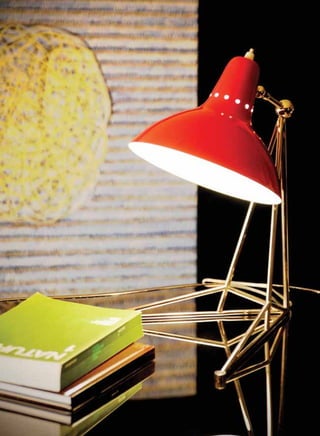 The document describes Delightfull's Heritage Collection of lighting designs. The collection includes over 45 designs across four categories: suspension lamps, floor lamps, table lamps, and wall lamps. The lamps are inspired by classic designs from the 1940s-1960s but with a contemporary aesthetic. Each piece is crafted by artisans using traditional skills combined with attention to emerging design needs. The collection aims to enhance interior spaces with unique, high-quality lighting designs that also have strong decorative presence.
