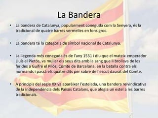 • La bandera té la categoria de símbol nacional de Catalunya.