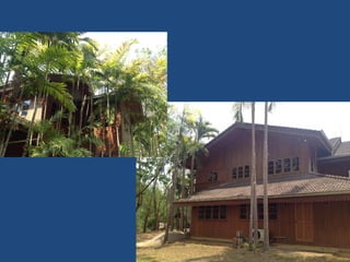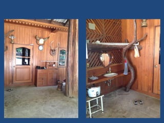 This document summarizes a trip where the author visited elders and experienced a beautiful home built around trees with wood carvings, many windows, and lack of a shower stall. It also mentions spotting Edna, harvesting jackfruit, and returning to civilization with notifications on devices.