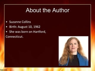 Suzanne Collins wrote Catching Fire, the sequel to The Hunger Games. In the book, Katniss and Peeta have returned home to District 12 after winning the Hunger Games but find no peace, as the president has organized another competition between past victors. Katniss and Peeta travel to the main district to train for the new Hunger Games and try to make allies while staying alive and finding a way to survive the competition. In the climax, although they have allies like Haymitch, Katniss and Peeta must still find a way to outwit the other competitors. In the end, Katniss destroys the arena but is worried when she and the others cannot find Peeta to rescue