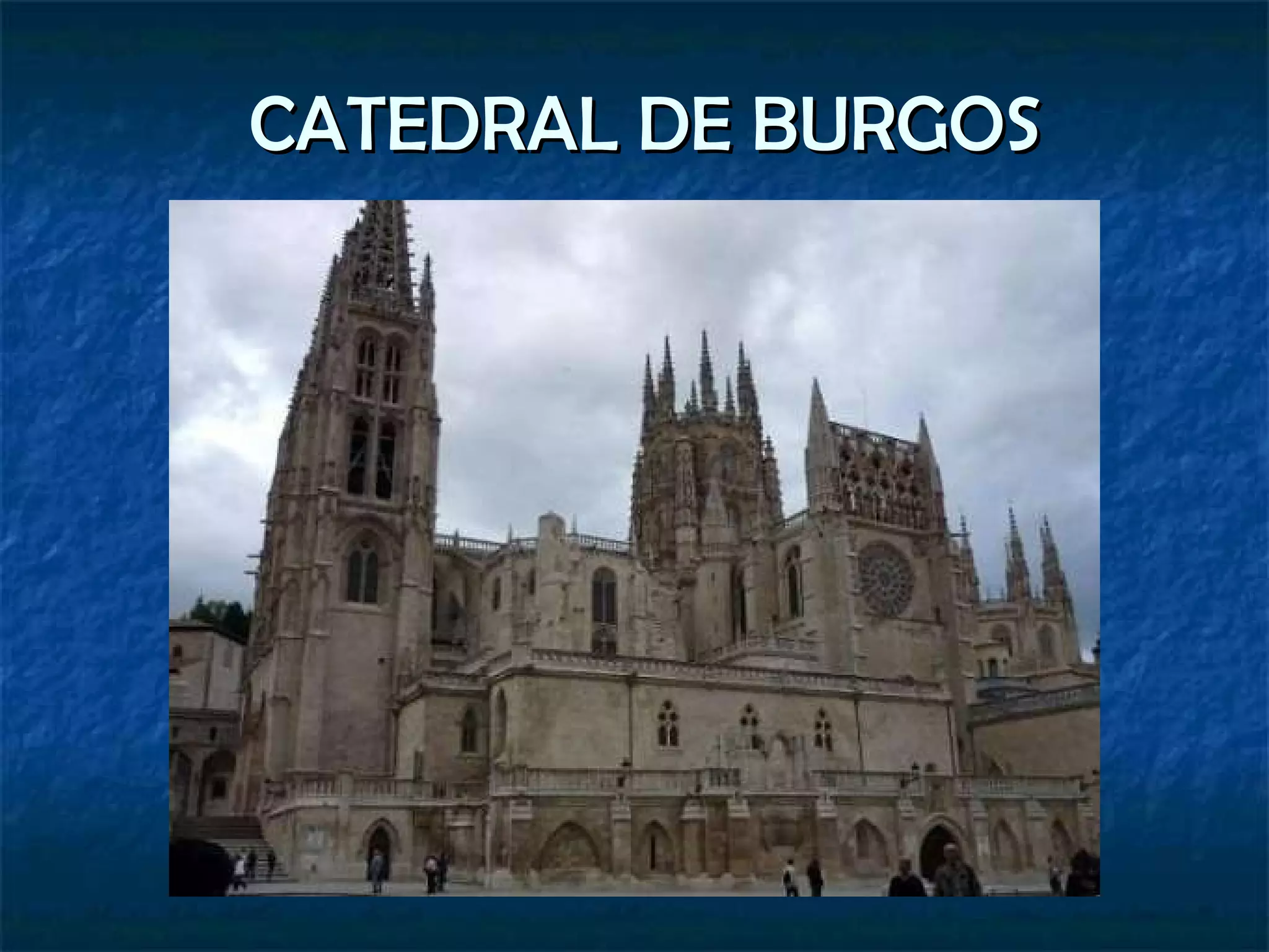 Documentació Santa IglesiaCatedral Basílica Metropolitana de Santa María de Burgos o Catedral de Santa María de Burgos Ferran III de Castella i bisbe Maurici són els promotors. Fase inicial arquitecte Maestro Enrique (França). Fase final segle XV Juan de Colònia i el seu fill Simó Abans romànica (Alfons VI, segle XI), 1221 , segle XV i XVI Interior de la ciutat de Burgos, Camí de Santiago, Riu Arlanzón. Acoplada dins el paisatge urbanístic, petita pendent. Pedra calcària, vidre i formigó