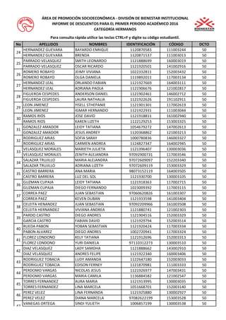 No APELLIDOS NOMBRESIDENTIFICACIÓN CÓDIGO DCTO