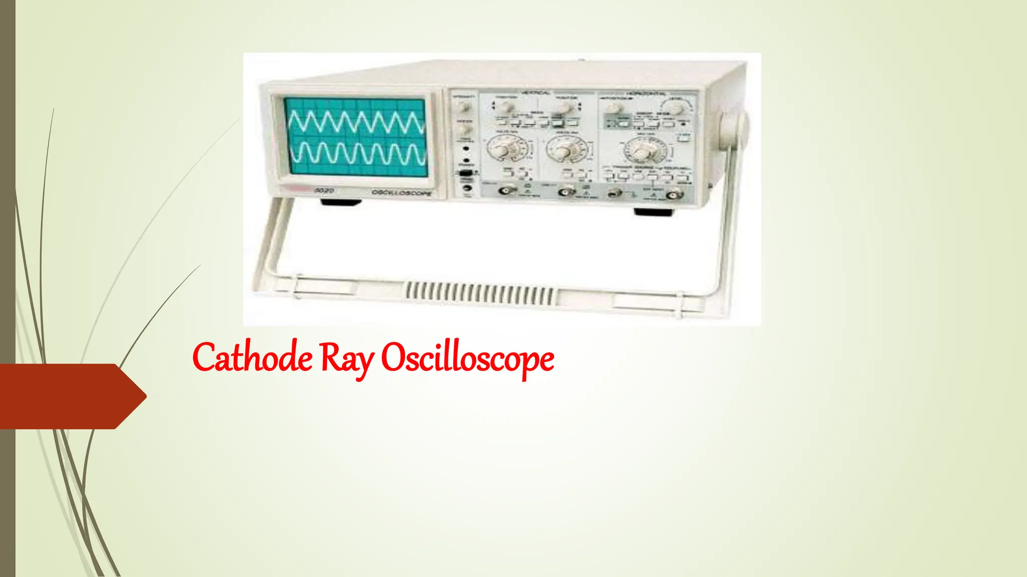 The document introduces the Cathode Ray Oscilloscope (CRO), explaining its structure, including display, vertical and horizontal controllers, and triggers, as well as the role of the cathode ray tube (CRT) in visualizing waveforms. It details the operation of the CRT, which generates images by directing an electron beam onto a phosphorescent screen, and outlines the functionality of the CRO's components, including the vertical and horizontal deflection systems. Finally, it highlights various applications of the CRO, such as voltage and current measurement, waveform analysis, and its use in laboratory settings.