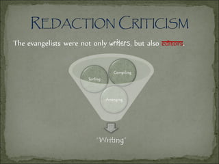 While scripture was divinely inspired, it was written by humans using their own language and perspectives. To properly understand scripture, one must consider both the human authors' intentions as well as God's divine inspiration. It is important to examine scripture within its historical and literary context using methods like historical criticism. Scripture should not be taken as completely literal but neither can it mean whatever one personally thinks - there must be careful examination and consideration of the Church's tradition.