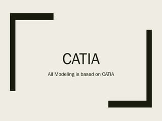 The document discusses various 3D modeling projects completed using CATIA software including a 2013 Formula project involving part modeling and assembly, a 2013 Iron Man project involving surface modeling and assembly, and a 2012 Engine project. All modeling was based on the CATIA software platform.