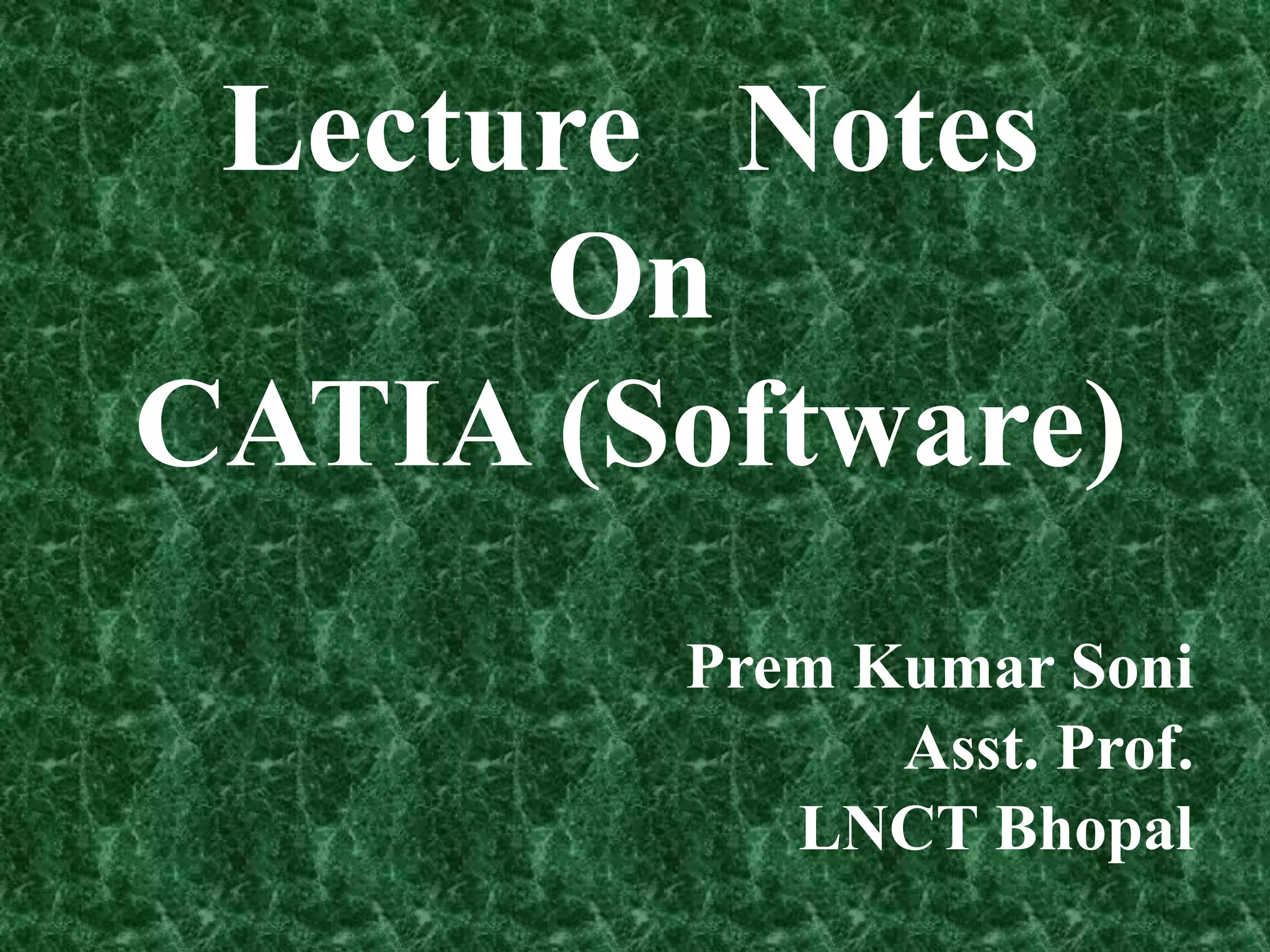 The document provides lecture notes on CATIA, a multi-platform software suite used for computer-aided design (CAD), computer-aided manufacturing (CAM), and computer-aided engineering (CAE). The notes outline the various features of CATIA including part design, assembly design, and sketching, emphasizing its flexibility and parametric capabilities. Additionally, it includes guidance on using the user interface, modifying parts, and creating assemblies efficiently.