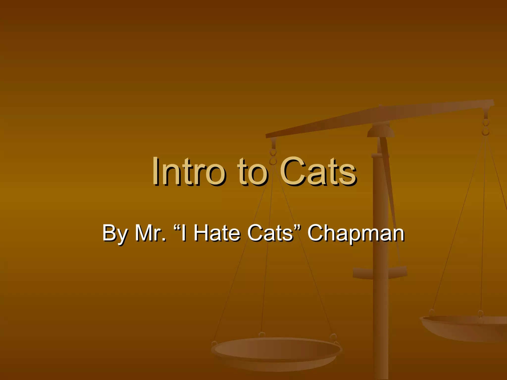 This document provides an introduction to cats, including their: