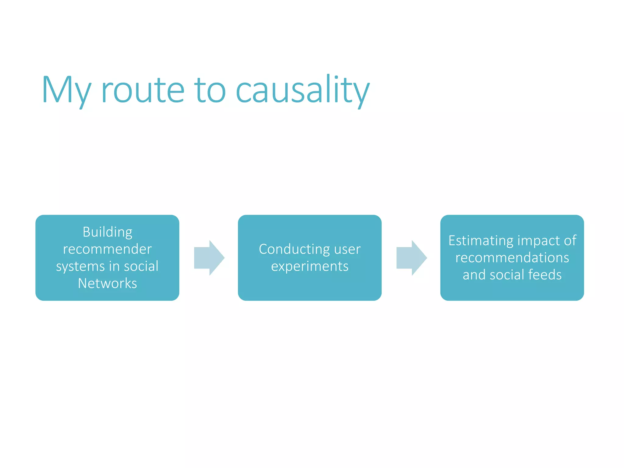 The document discusses the importance of causality across various fields including economics, political science, human behavior, and biology. It outlines methods for estimating causal effects, emphasizing the use of graphical models and the distinction between randomized experiments and observational data. The author highlights the practical implications of understanding causality in recommender systems and social networks.