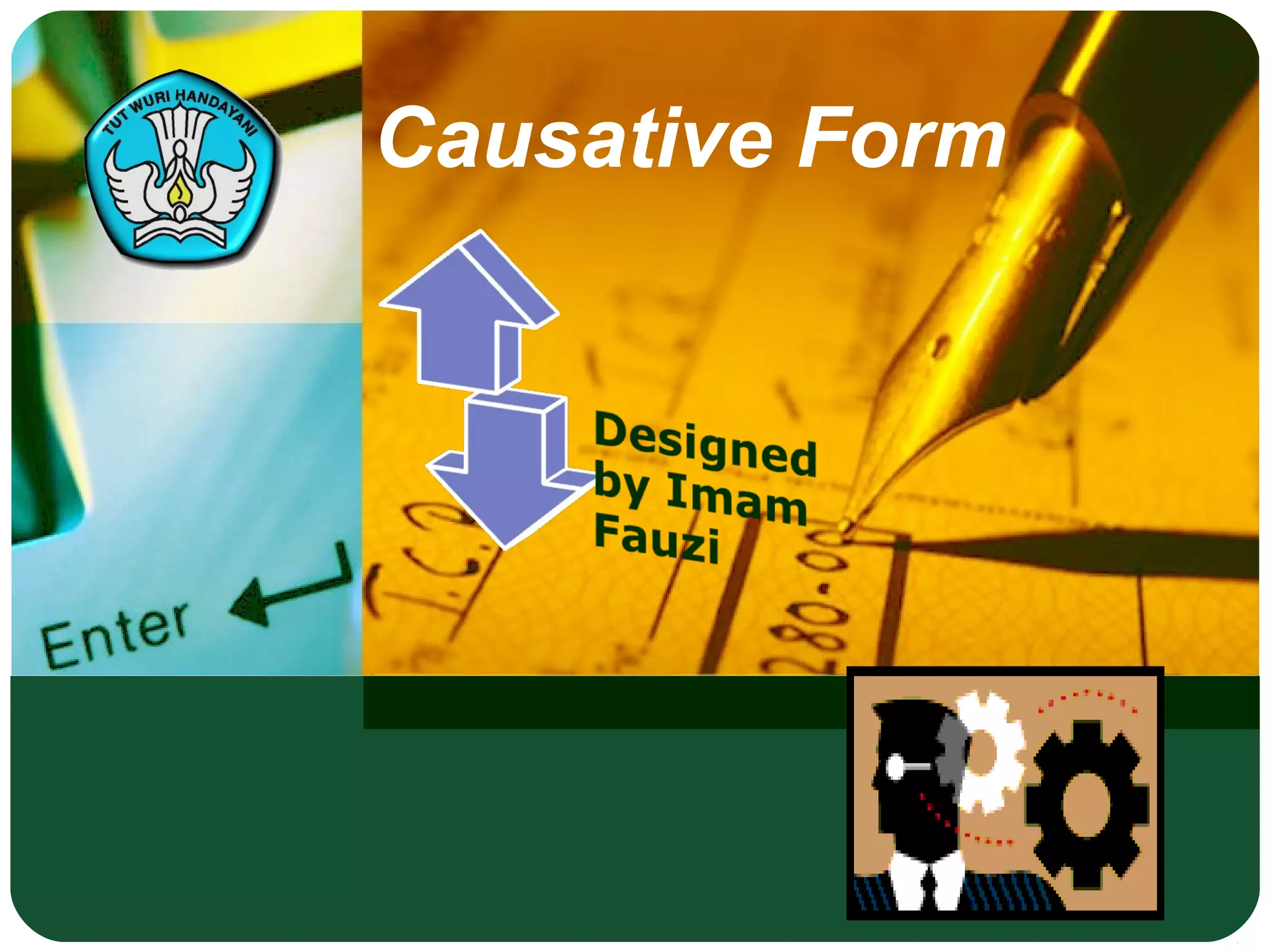 This document discusses causative verbs in English grammar. It provides examples of common causative verbs like have, make, and get used to express ideas. It explains the causative active and passive forms with simple examples like "She has his brother pick her up" and "The man has his bike repaired by him". It encourages readers to click on a related page title for a video lesson and exercises to further understand and practice causative verbs.
