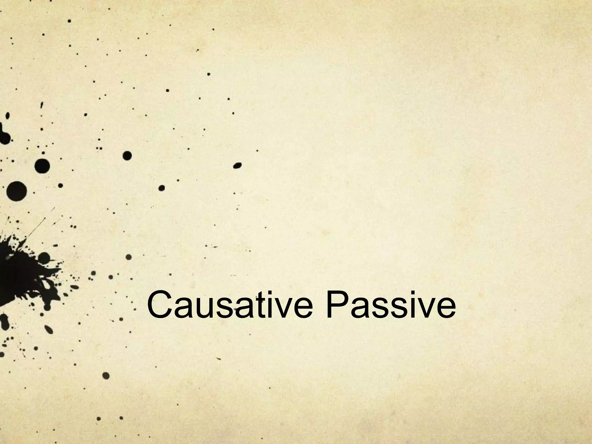 This document discusses causative passives in English. It provides examples of sentences using active causatives and their equivalent passive causatives, such as "I had the dentist pull my tooth" and "I had my tooth pulled." It explains that causative passives using "have" or "get" indicate that the subject caused the action without directly performing it. Care must be taken with causative passives as they can be confused with the past perfect tense. The document also notes that causative passives are used when the active agent is obvious, unimportant, or something the speaker does not want to specify.