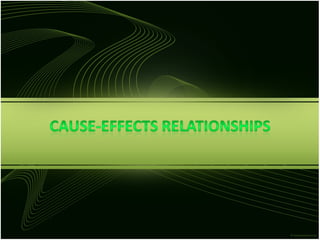 This document defines and provides examples of causes and effects. A cause is something that makes something else happen, while an effect is the result of a cause. Examples are given such as a boy kicking a ball which caused the ball to roll. Words like "because", "so", "consequently", and "as a result" indicate sentences about causes and effects. Diagrams can represent causes with multiple effects or multiple causes leading to one effect.