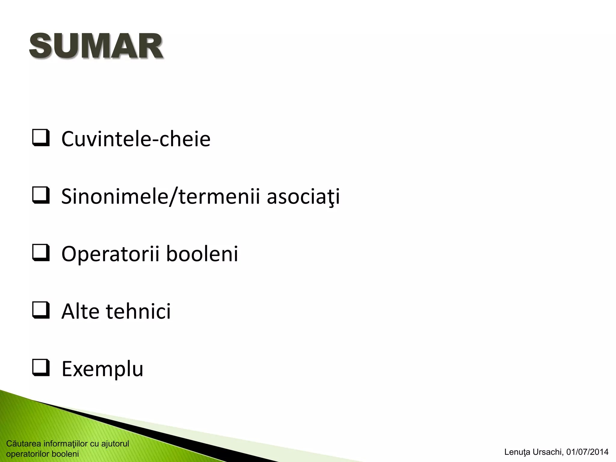Documentul oferă un ghid detaliat despre utilizarea operatorilor booleani în căutarea informațiilor. Acesta subliniază importanța definirea cuvintelor-cheie și utilizarea sinonimelor/termenilor asociați, precum și diverse strategii de căutare. Exemplele prezentate ilustrează cum combinația corectă a termenilor poate îmbunătăți rezultatele căutărilor.