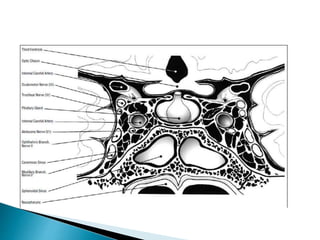 1. The cavernous sinus is located on either side of the body of the sphenoid bone and contains several important structures like cranial nerves and blood vessels.