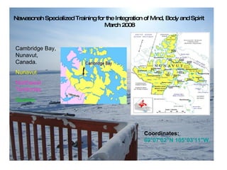 The Nawasonah training program in Cambridge Bay, Nunavut, from March 14-19, 2008, focused on the integration of mind, body, and spirit, empowering women with healing arts skills to start their own businesses. Students participated in hands-on experiences, including a wellness fair, while the program emphasized community involvement and nutrition. The initiative, led by Cree elder Janet Stafford, aims to foster personal growth and healing through a holistic approach.