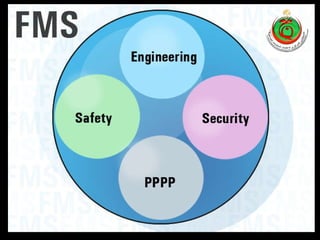 A fire broke out in a hospital patient room. Various staff members reacted differently - some evacuated patients, others tried to put out the fire or turn off oxygen, while one person fled. To improve safety, the document recommends establishing standards, training, and a unified emergency response plan. It also outlines policies and procedures for facility management, engineering standards, safety committees, hazardous materials handling, and security roles and training.