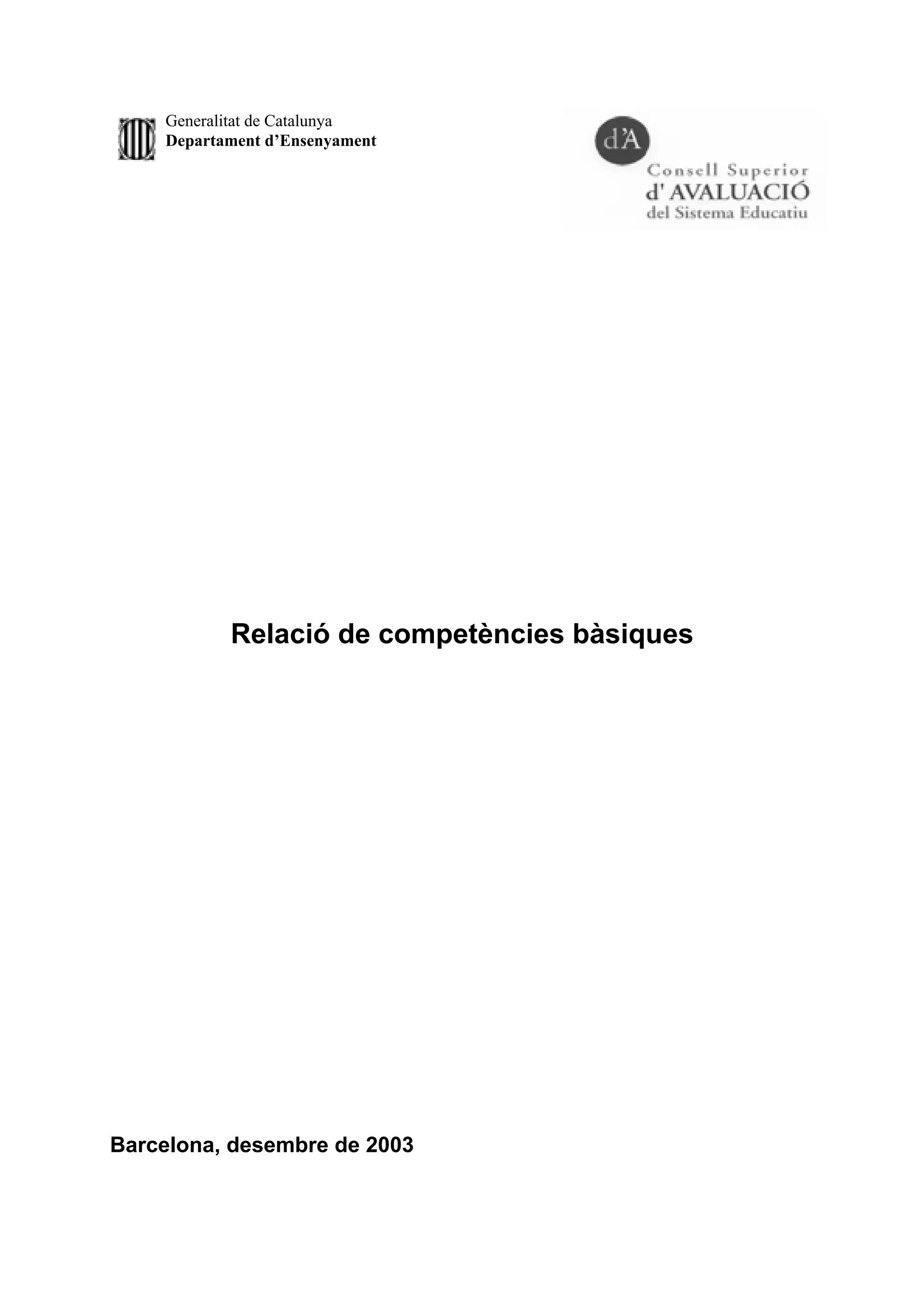 Departament d'Ensenyament (2000). Identificació de les competències en