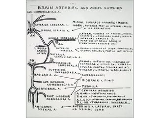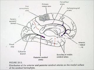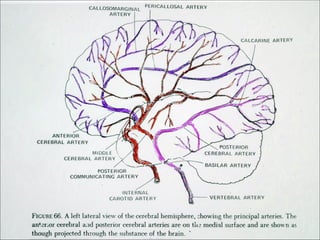 2. It describes the main arteries and veins supplying the brain and how regional cerebral blood flow is regulated by factors like carbon dioxide levels, oxygen levels, and neural activity.