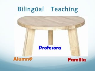 This document provides information about bilingual teaching and supporting students learning English at home. It includes suggestions for how parents can support their children and the school, like creating an encouraging atmosphere at home, using videos, cartoons and participating in school activities. It also gives an example of a respiratory system lesson in both English and Spanish, explaining the parts and process. Lastly, it provides tips for studying at home, like reading to understand rather than memorize, and recommendations for online dictionaries and pronunciation tools.