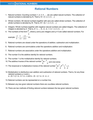 In mathematics, a rational number is a number that can be expressed as the quotient or fraction p/q of two integers, a numerator p and a non-zero denominator q. For example,