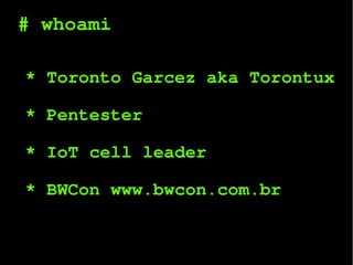 The document outlines a project focused on pentesting and creating command and control (C&C) botnets, detailing processes for extracting and analyzing firmware as well as exploiting vulnerabilities in embedded devices. It includes motivational notes, agenda items related to firmwares, bugs, and various hack logs that document reverse engineering efforts to develop exploits. Furthermore, it highlights tools and methods for firmware analysis and outlines next steps for refining the project.