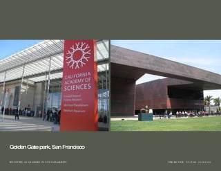 The document discusses how museums can become leaders in sustainability by adopting environmentally sound practices, improving building performance, leading in sustainability education and communication, and accepting that success requires realigning factors. It provides examples of benchmarks for moving forward, such as the OMSI Green Exhibit Certification tool, use of LED lighting at The Huntington Library, and the Green Museums Initiative website and Accord pledge. Signing the Green Museums Accord involves commitments like educating stakeholders, considering sustainability in projects, and estimating carbon footprints to reduce emissions over time.