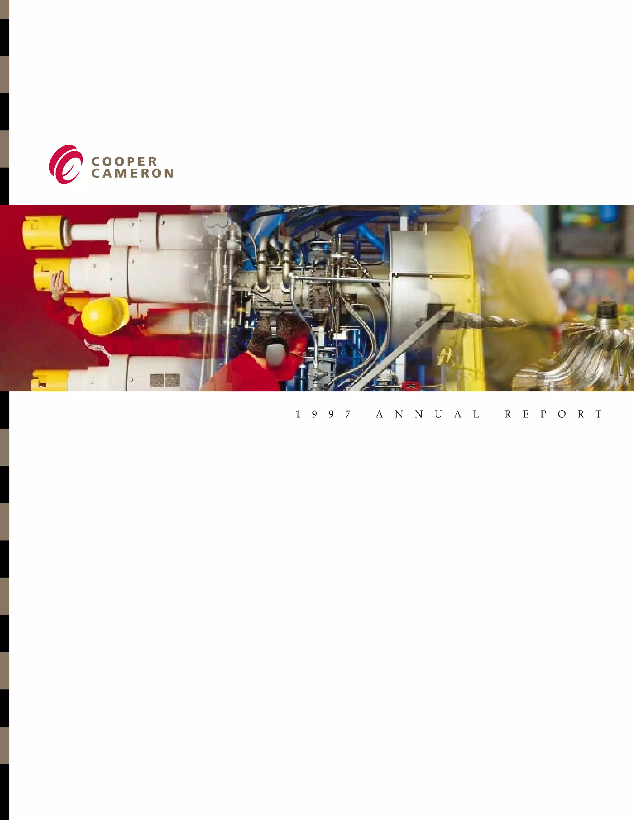 This annual report summarizes the financial highlights and performance of Cooper Cameron Corporation for the years 1997, 1996 and 1995. Some key points: - Revenues increased over 30% from 1996 to 1997, reaching $1.81 billion, driven by acquisitions, pricing improvements and strong sales. - Earnings before interest, taxes, depreciation and amortization exceeded the target of 15% of revenues, reaching 16.3%. - Net income improved to $140.58 million in 1997 compared to a net loss in 1996. - The CEO outlines plans to continue improving productivity and manufacturing efficiency to meet increased financial targets for 1998.
