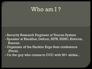 The document summarizes the Post Memory Corruption Memory Analysis (PMCMA) tool. PMCMA allows finding and testing exploitation scenarios resulting from invalid memory accesses. It provides a roadmap to exploitation without generating exploit code. The tool analyzes programs after crashes to overwrite memory locations in forked processes and test impact on execution flow.