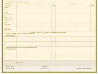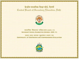 Continuous and comprehensive evaluation (CCE) aims to assess students in a holistic manner that covers both scholastic and co-scholastic aspects. It involves periodic, school-based assessments using various techniques like observation, oral questions, written work, projects, and portfolios. CCE aims to reduce stress and focus more on learning than exams. It also helps develop students' life skills and personality. The CBSE introduced CCE to reduce reliance on board exams and encourage a more well-rounded evaluation of students.