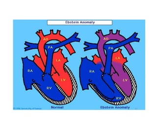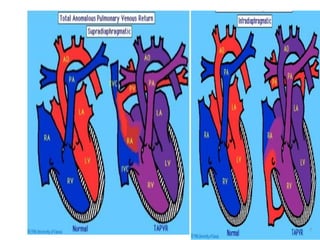 1. Congenital cyanotic heart disease refers to heart defects present at birth that result in low oxygen levels in the blood. They are classified as those with increased or decreased blood flow to the lungs.
