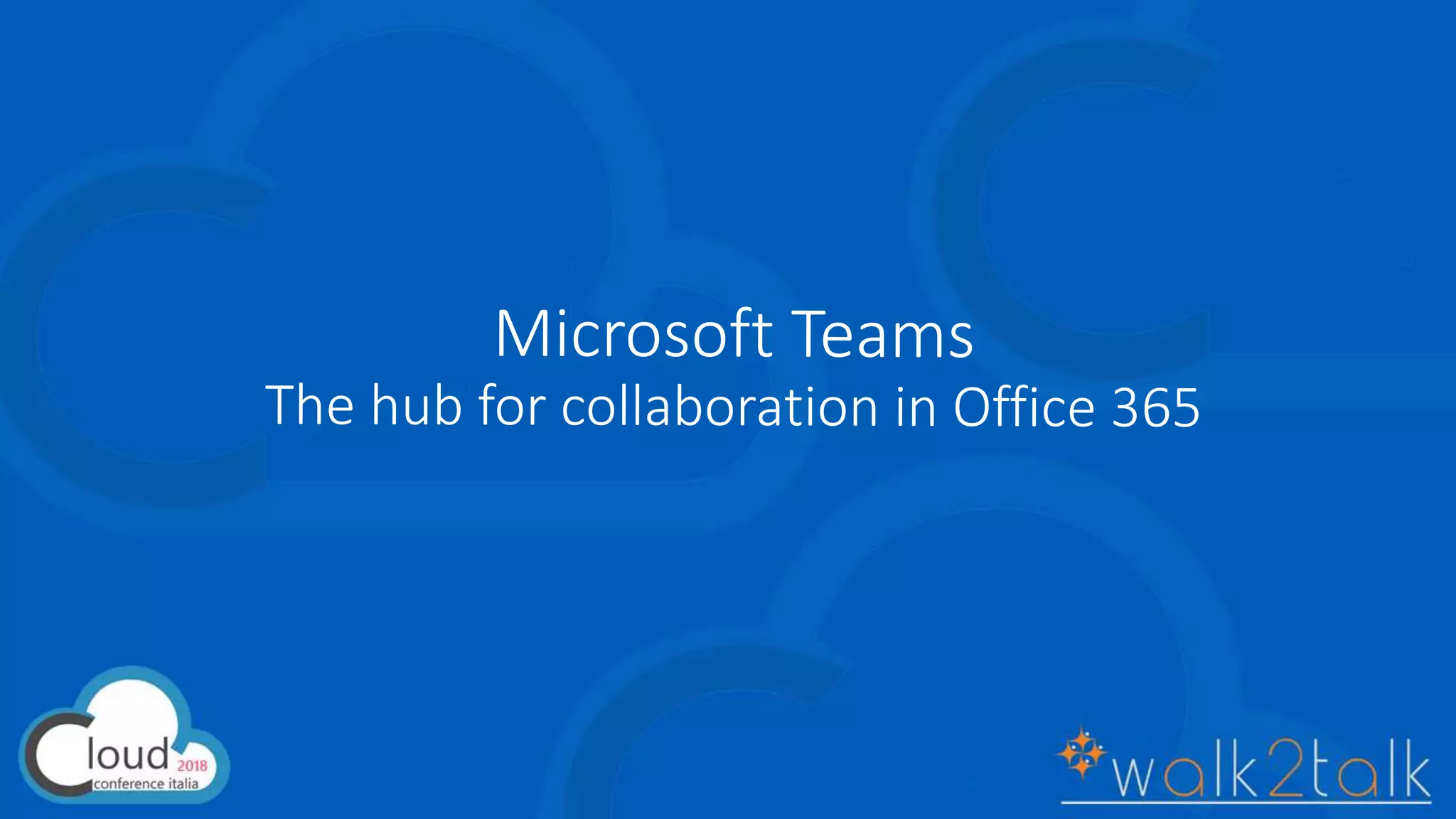 Giuseppe Marchi, co-founder of Dev4Side and a Microsoft MVP, specializes in Office 365 and SharePoint solutions, offering services including intranet applications, custom web applications, and e-learning for Office 365 adoption. His initiative, office365italia.com, provides online training courses, and various resources to facilitate the adoption of the Microsoft ecosystem. The document also outlines the capabilities of Microsoft Teams, emphasizing customization and integration of third-party apps to enhance teamwork and productivity.