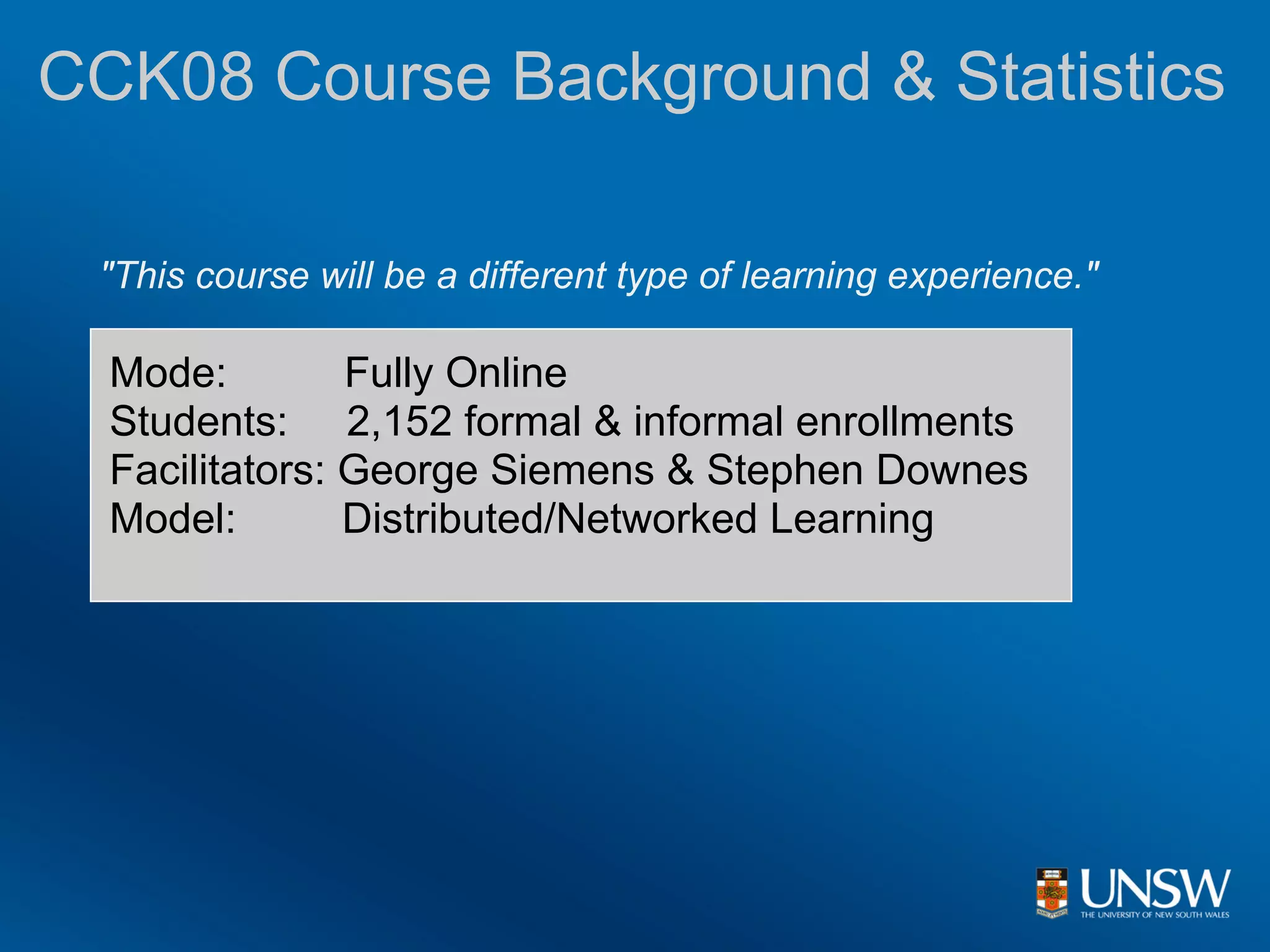 The document outlines the Connectivism and Connective Knowledge MOOC (CCK08) led by facilitators George Siemens and Stephen Downes, highlighting the course's unique online learning model with over 2,000 students enrolled. It describes various course components, including wikis, blogs, and forums, alongside plans for conferences covering diverse topics related to net pedagogy and systemic change. Additional resources and links for further exploration of the course and its content are provided.