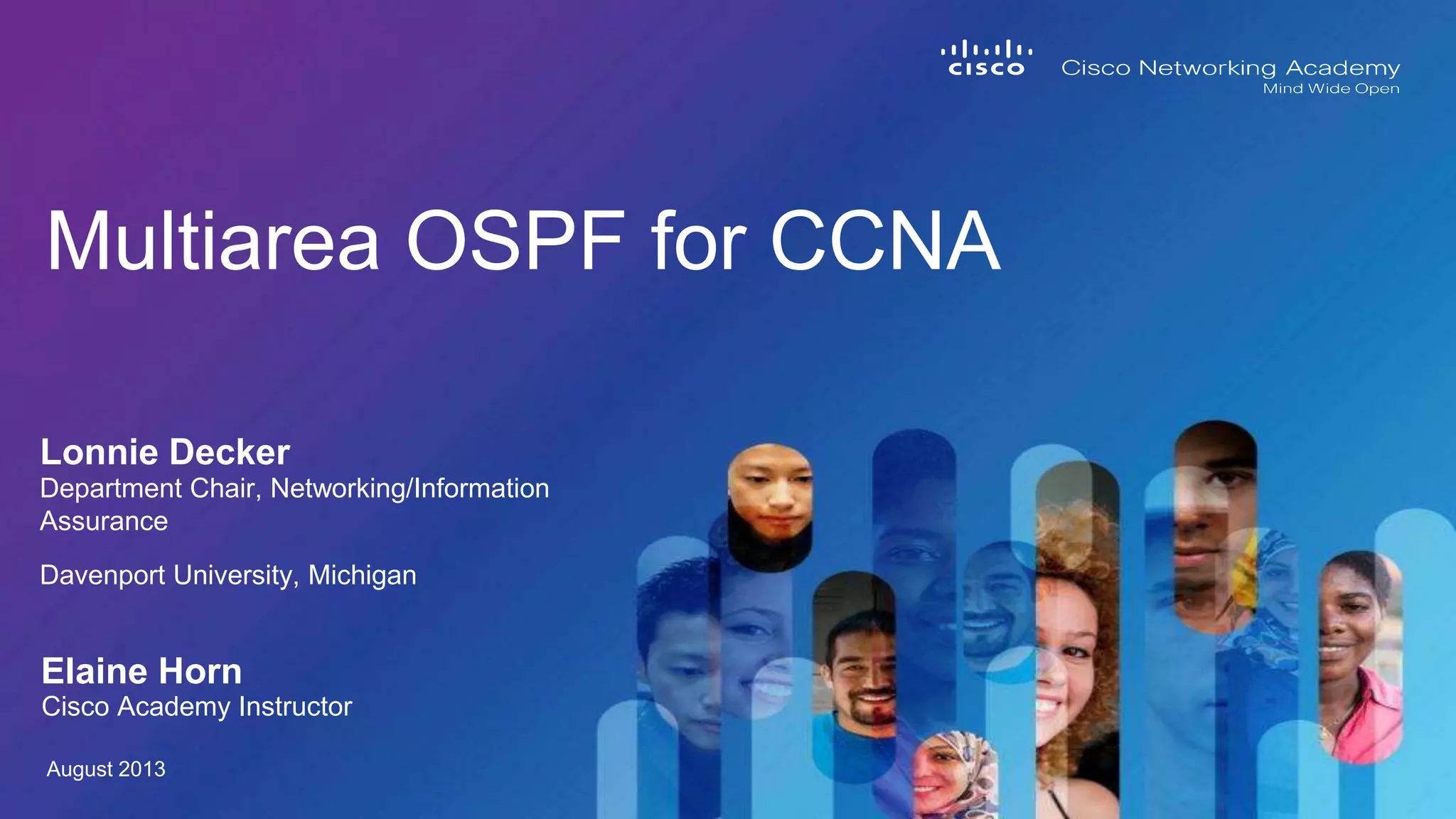 This document provides an overview of multiarea OSPF routing. It discusses how multiarea OSPF implements a two-layer hierarchy with an area 0 backbone and other connected areas. It describes the different types of LSAs exchanged between areas and how routes are summarized. Configuration and verification commands are also presented.
