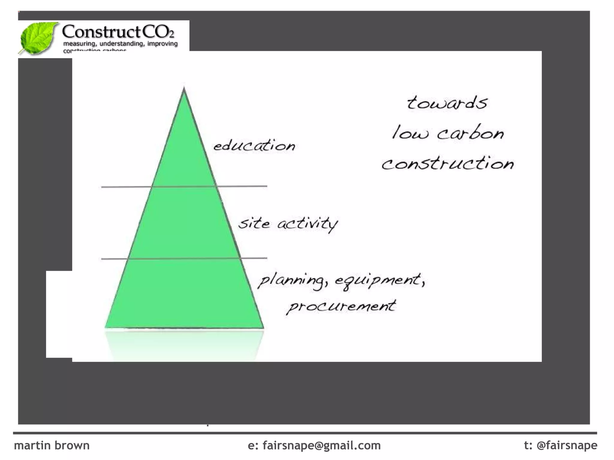 The document discusses the need for reducing carbon emissions from the built environment sector, which is responsible for 40% of global emissions. It advocates for a low carbon construction action plan and carbon reduction targets in order to transition to more sustainable practices. Support and discussion groups on social media are recommended to facilitate information sharing and moving forward with carbon reduction actions.