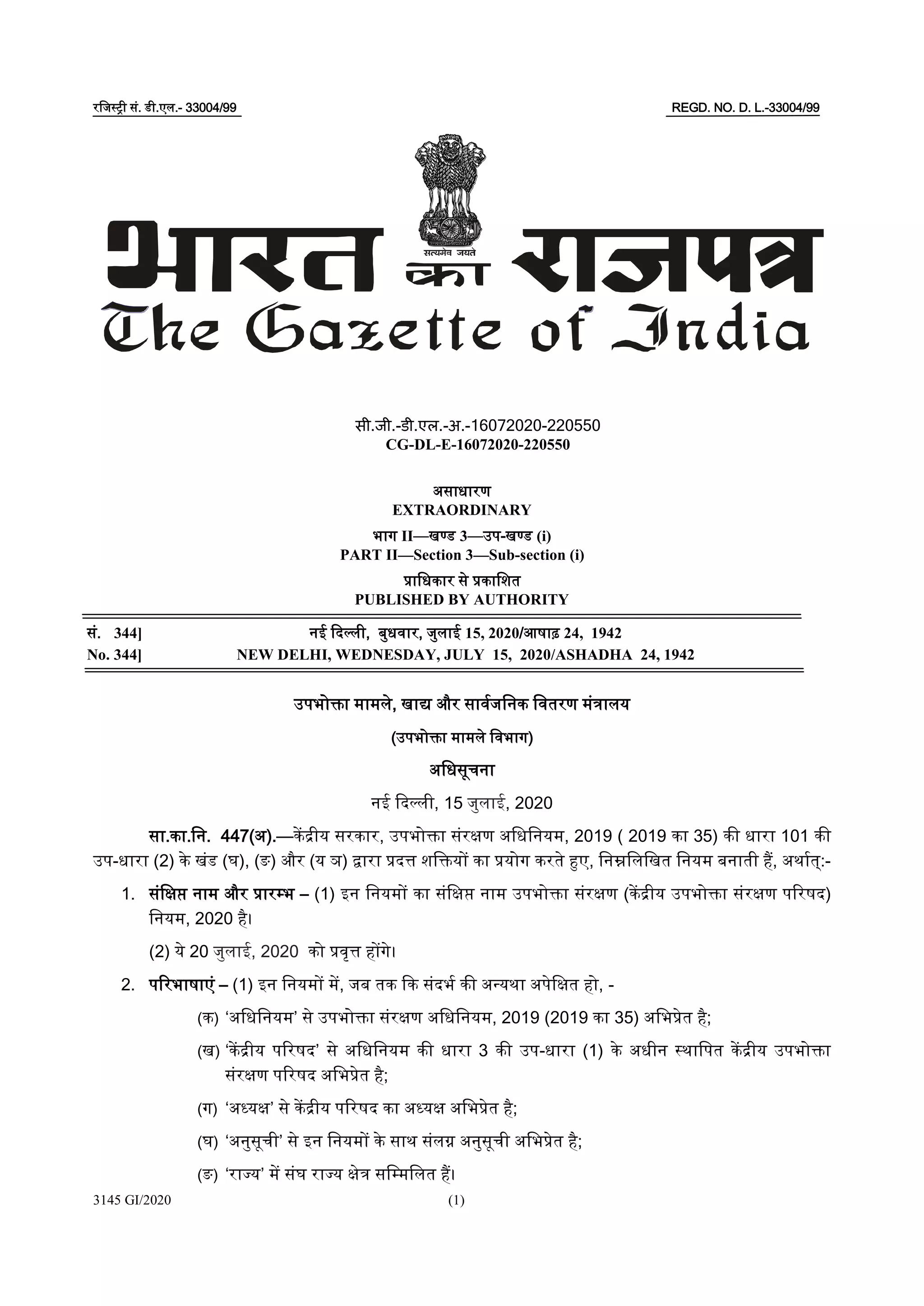 (Central Consumer Protection Council) Rules, 2020.