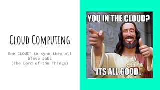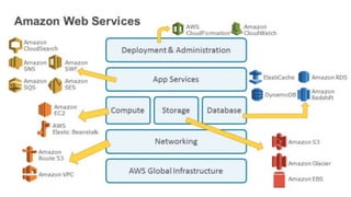Cloud computing refers to on-demand delivery of computing resources and applications via the Internet. It provides scalable resources like servers, storage, and applications delivered as a service. The key types of cloud services are Software as a Service (SaaS), Infrastructure as a Service (IaaS), and Platform as a Service (PaaS). AWS is a leading cloud provider that offers a variety of cloud services like compute, storage, databases, and analytics to help build and run applications and services.