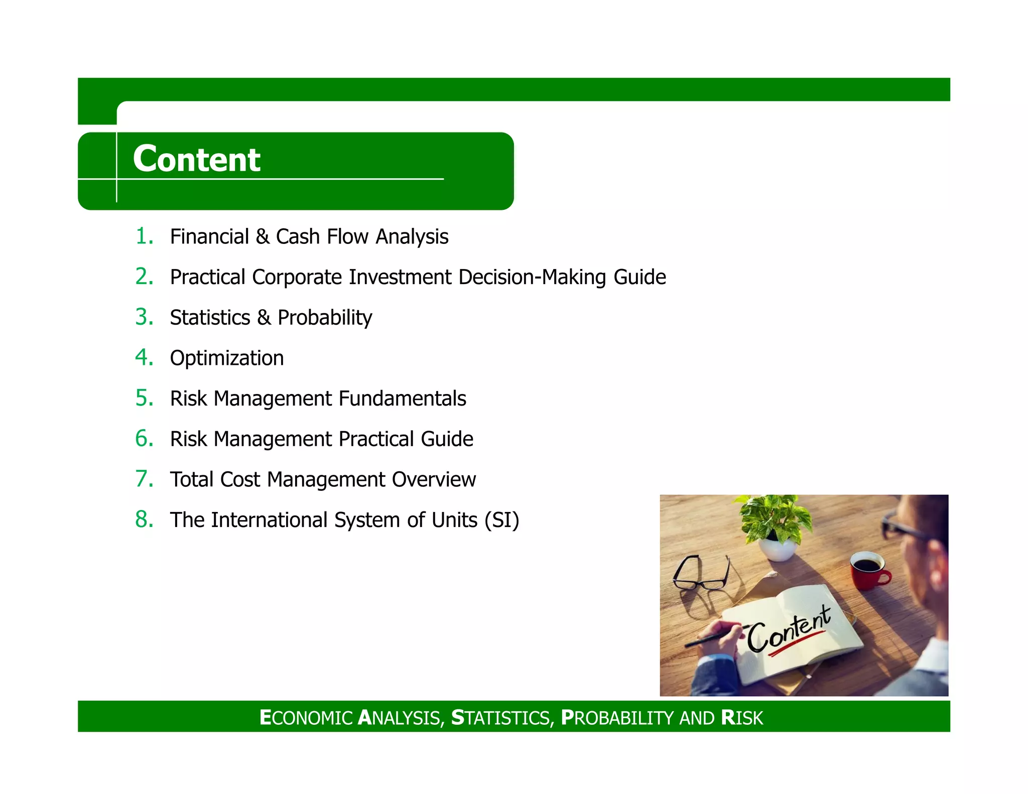 The document provides a comprehensive overview of financial and cash flow analysis, including essential concepts such as time value of money, interest rates, risk management, and methods for evaluating investments. Key topics discussed include financial metrics like net present value (NPV), internal rate of return (IRR), and benefit-cost ratio (BCR), along with cash flow analysis techniques. Various scenarios are presented to illustrate how these financial principles can be applied in practical decision-making.