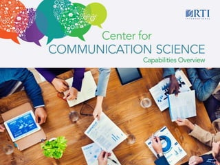 RTI International's Center for Communication Science promotes informed decision making through strategic communication research, interventions, and campaigns. They develop evidence-based solutions to facilitate human-centered communication and influence behavior change. Their services include designing communication strategies and tools, conducting research, and delivering programs to create social impact.