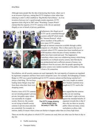 CCTV cameras serve various functions depending on their type and placement. High mounted "eye in the sky" cameras can prevent crimes like car theft but often cannot capture perpetrator faces clearly. Dome cameras placed in public spaces like shops can provide full room coverage and have been linked to 23% lower crime. Regular surveillance cameras monitored clusters for security purposes like construction site theft monitoring. Home CCTV kits allow monitoring one's property but raise privacy concerns. While CCTV has aided investigations and is regulated in many cases, some argue it displaces rather than reduces crime and illegal public monitoring has occurred.