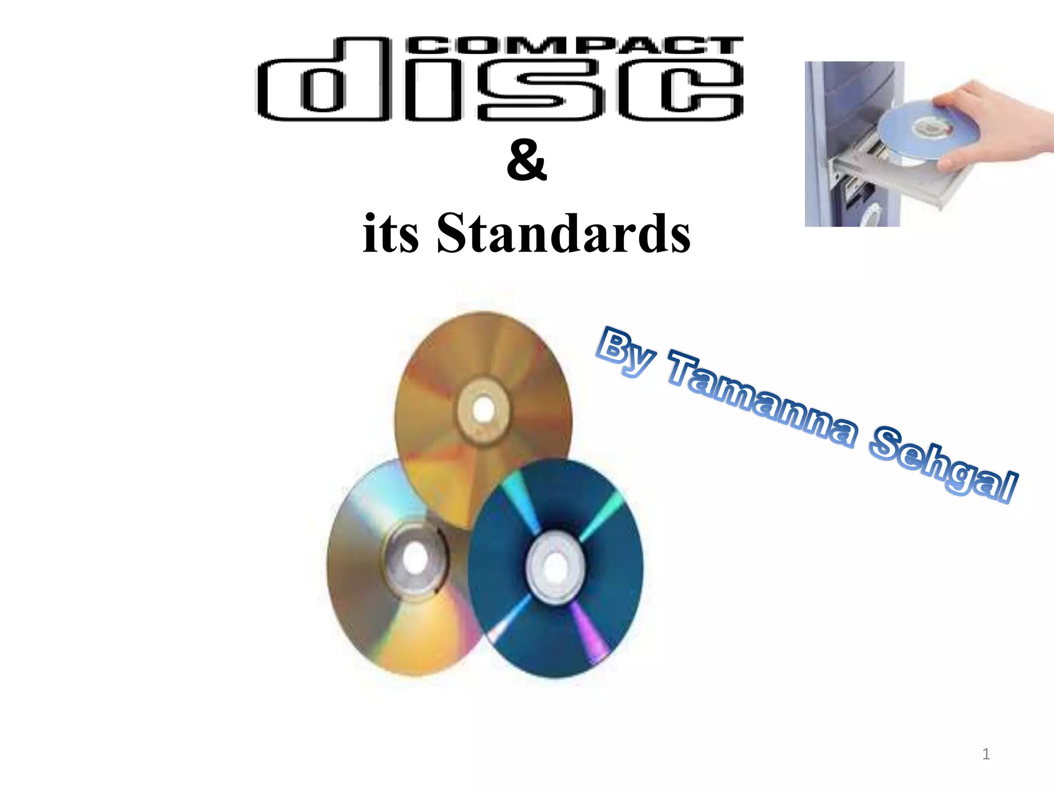 The document discusses the history and standards of compact discs (CDs). It explains that CDs were originally developed in 1980 by Philips and Sony to store digital audio (the "Red Book" standard). Later extensions allowed CDs to also store computer data, video, and graphics. The document outlines several CD formats and standards over time such as CD-ROM, CD-R, CD-RW, and Video CD. It describes the physical details of CDs and how data is organized and read by lasers detecting pits and lands on the disc's surface. Standards are classified by "book colors" that define specifications for different disc systems.